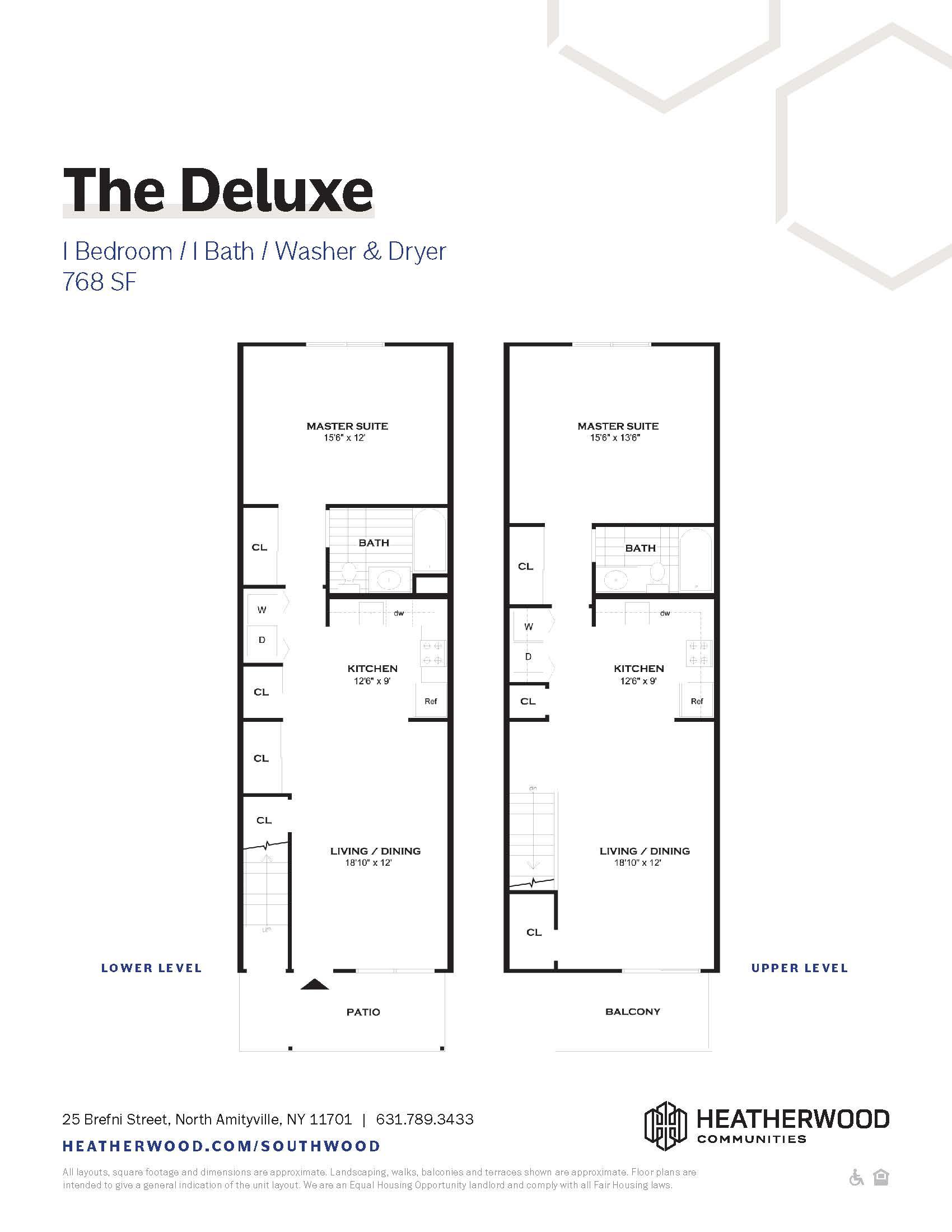 All layouts, square footage and dimensions are approximate. Landscaping, walks, balconies and terraces shown are approximate. Floor plans are intended to give a general indication of the unit layout.